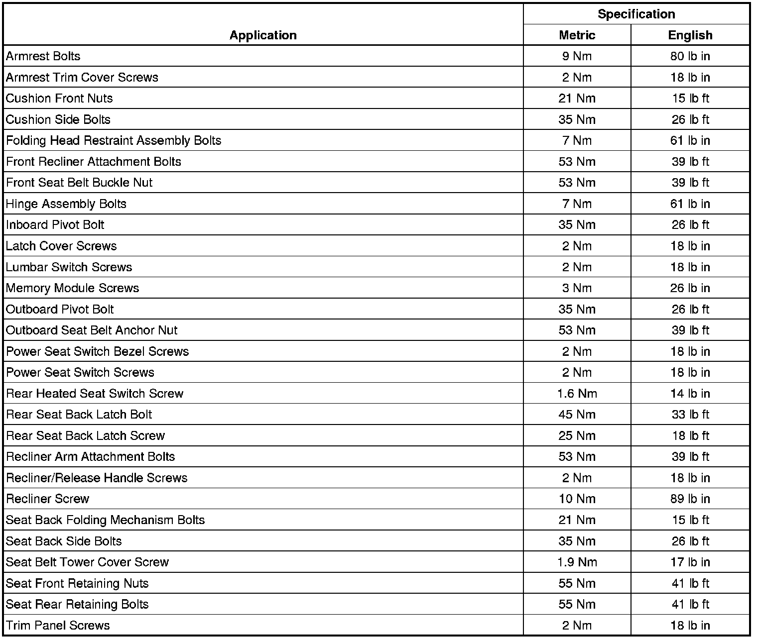 Fastener Tightening Specifications