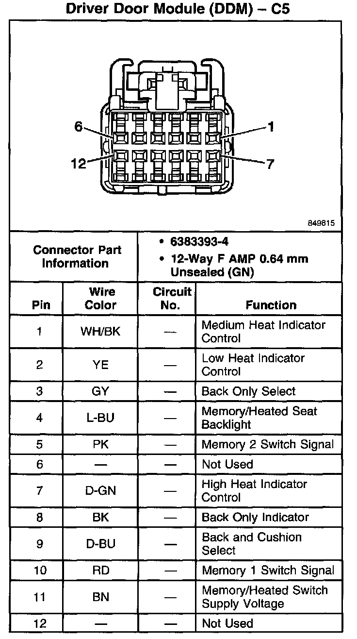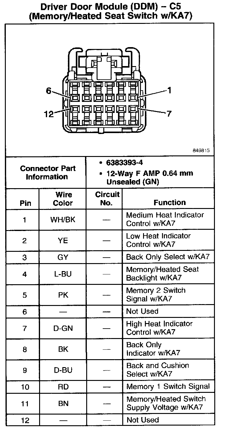 Driver Door Module (DDM) - C5 (Memory/Heated Seat Switch With RPO Code KA7):