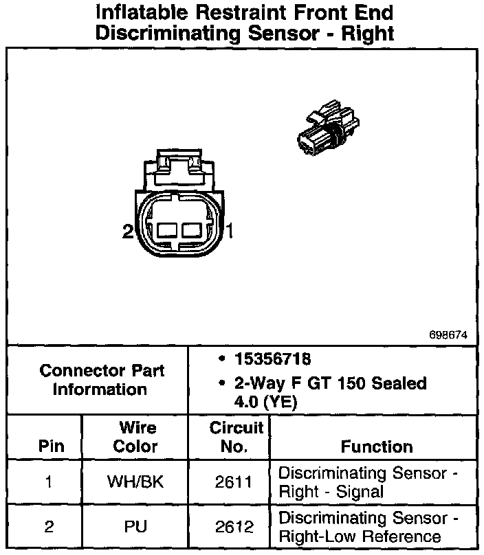 Inflatable Restraint Front End Discriminating Sensor-Right: