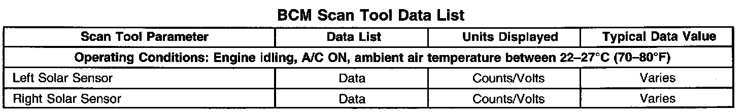 BCM Scan Tool Data List: