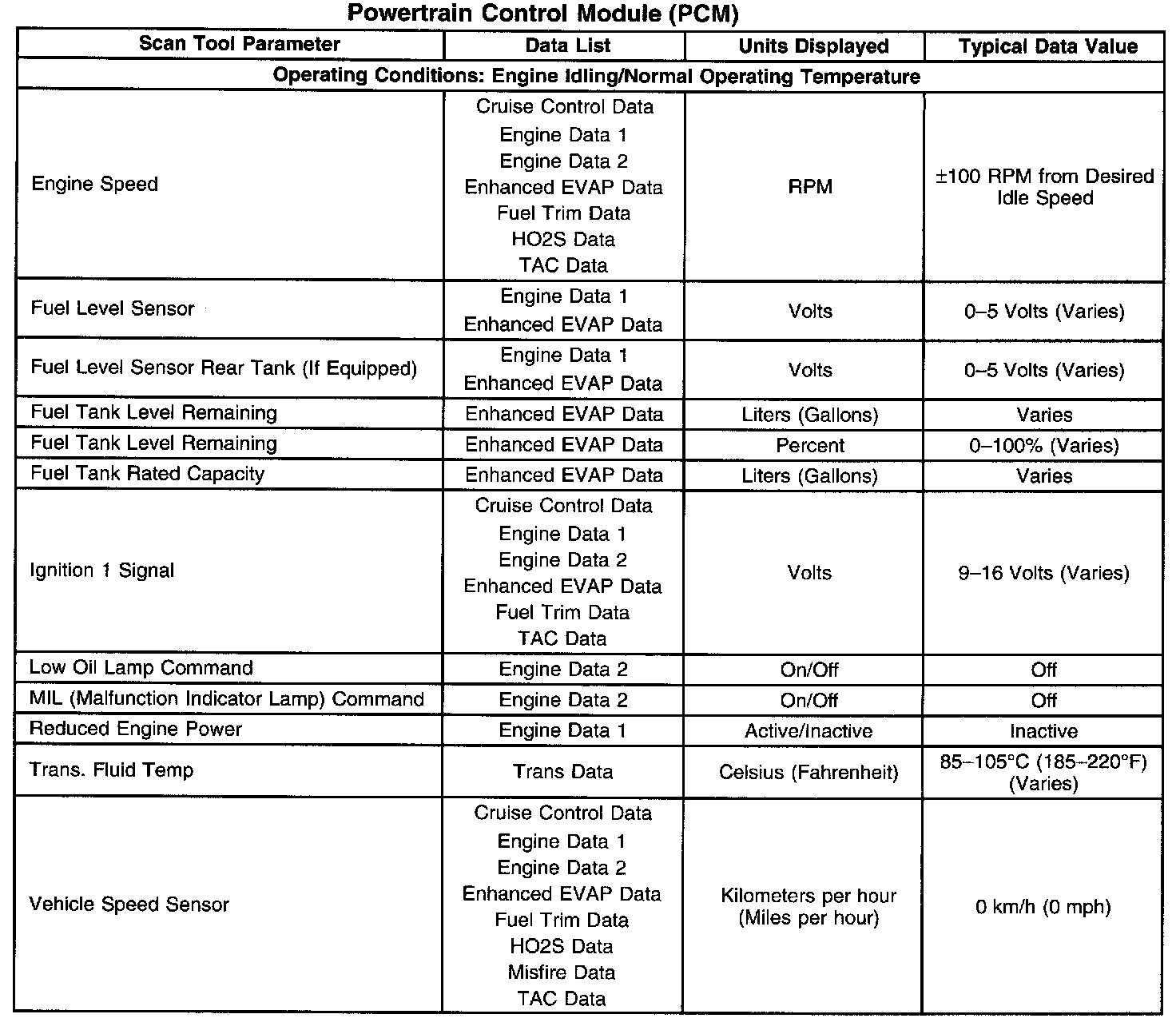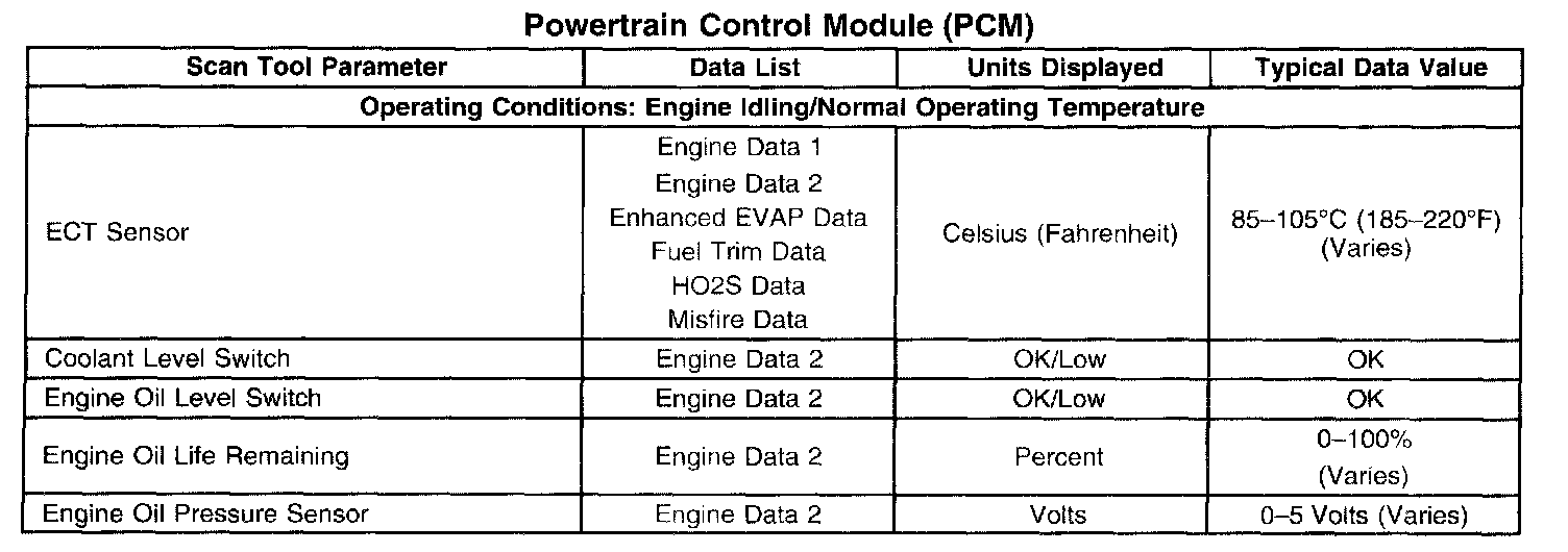 Scan Tool Data List - Powertrain Control Module (PCM) Part 2: