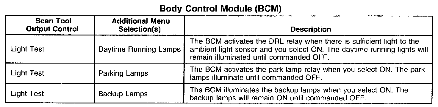 Scan Tool Output Controls - Body Control Module (BCM) Part 1:
