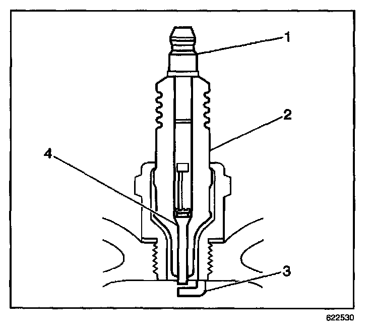 - Inspect for the correct spark plug torque. Refer to Ignition System Specifications. Insufficient torque can prevent correct spark plug operation. An over torqued spark plug, causes the insulator (2) to crack.