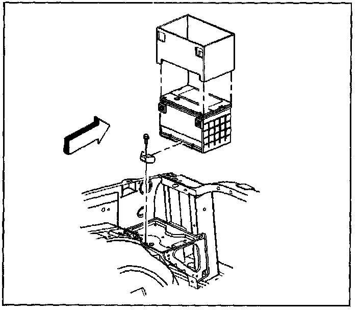 3. Remove the battery hold down retainer bolt and retainer.