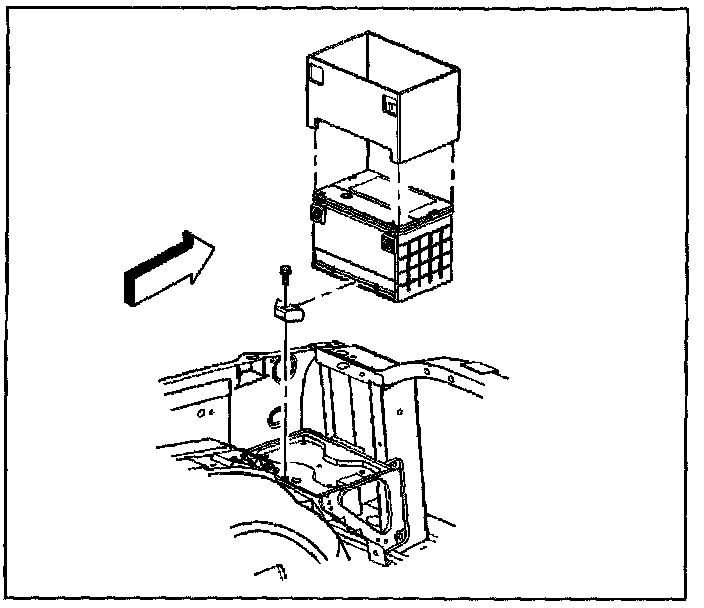Tighten the battery hold down retainer bolt to 25 N.m (18 lb ft).