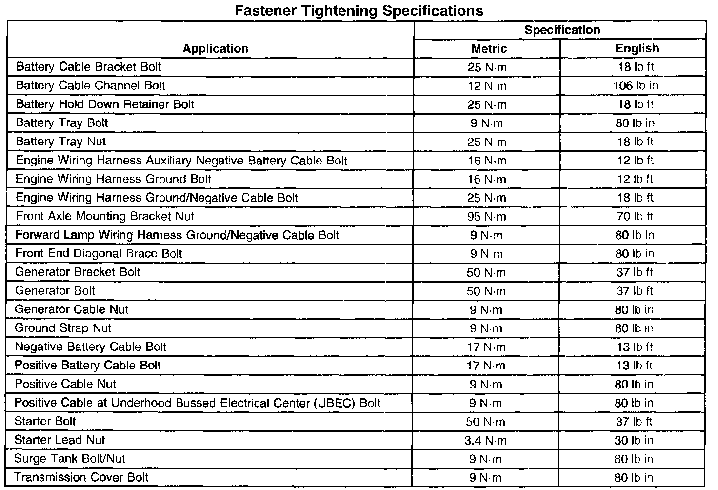 Starting and Charging: Specifications