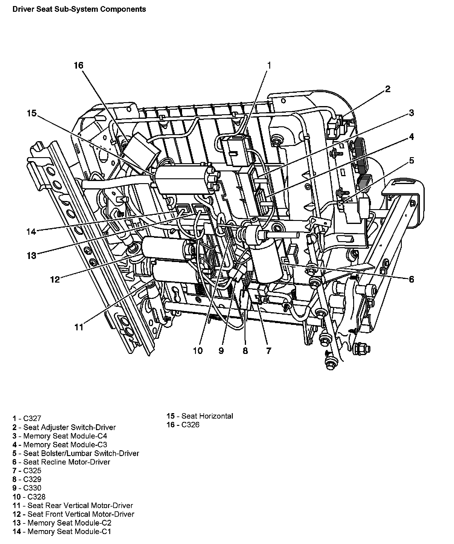 Driver Seat Sub-System Components: