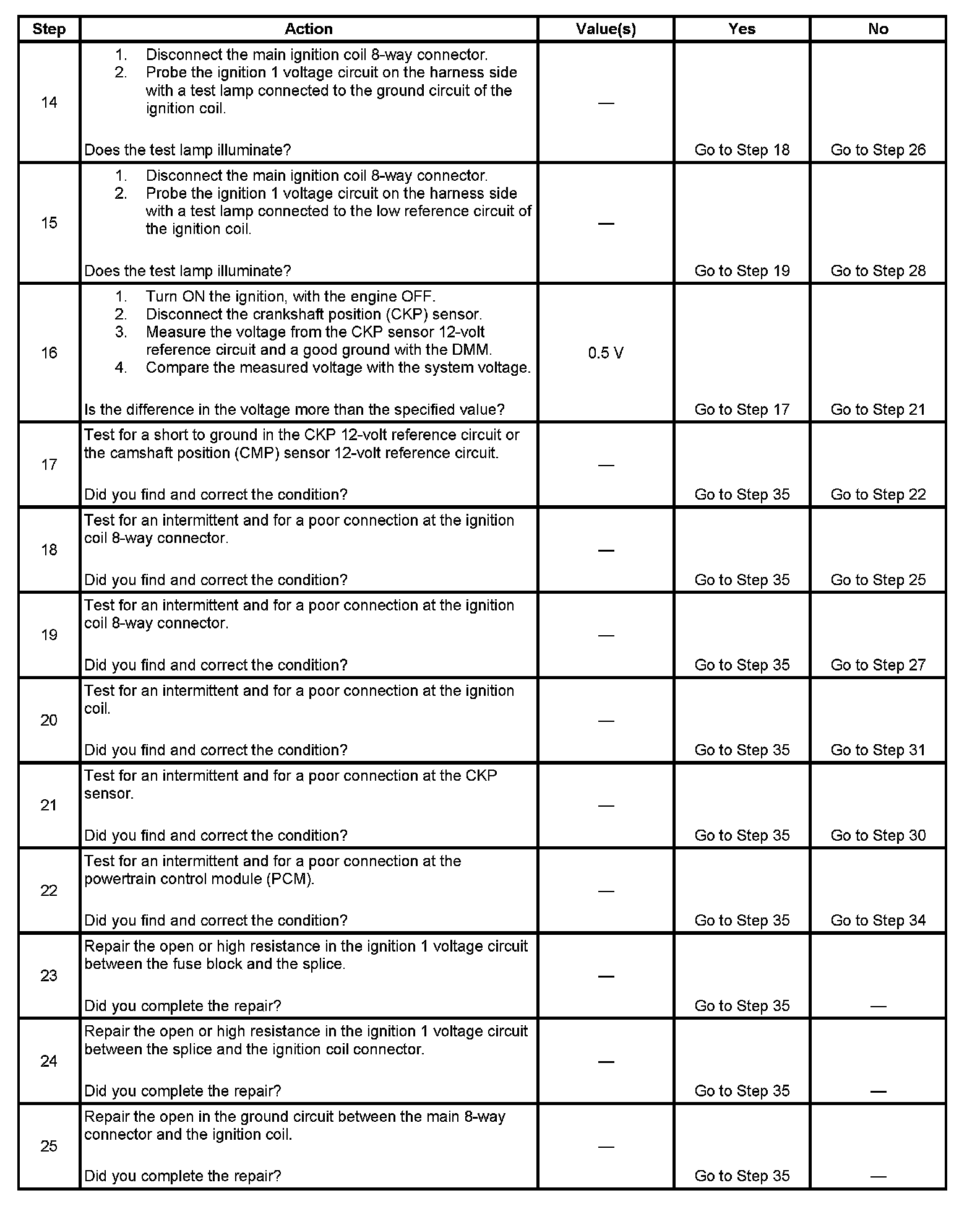 12. A good indication that the fuse is open is all of the misfire current counters are incrementing on one side of the engine. Inspect the ignition positive voltage circuit for a grounded circuit. If the fuse is open and the ignition coil circuits are OK, inspect the injector circuits for being grounded.