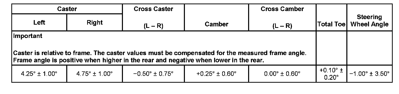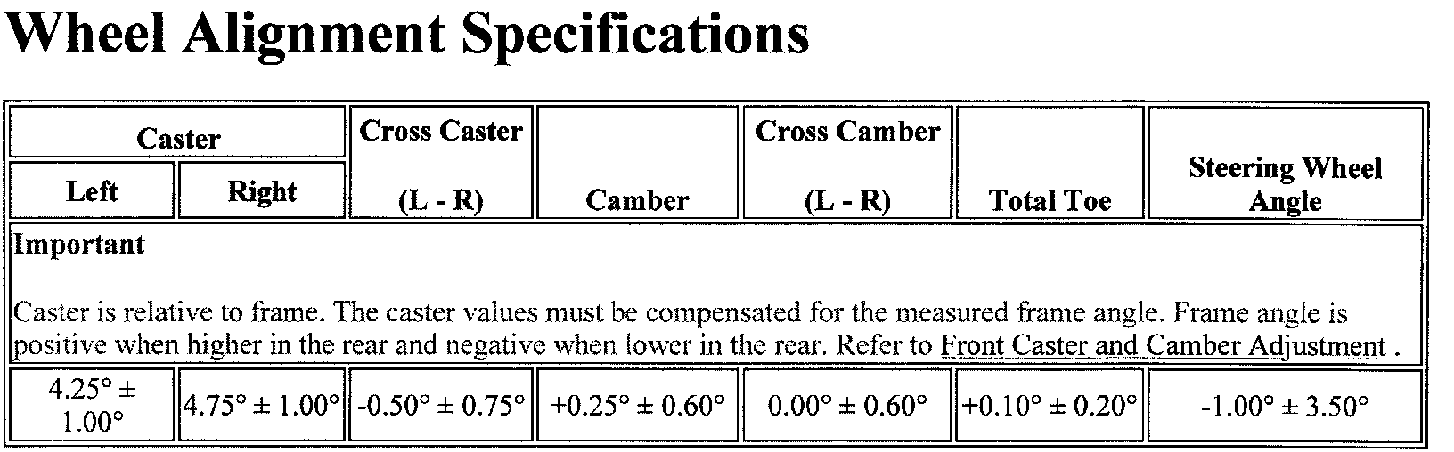 Wheel Alignment Specifications