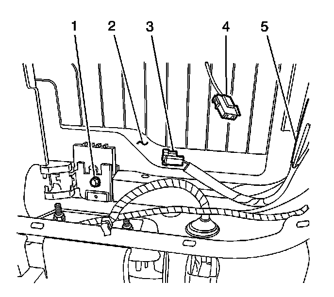 7. Disconnect the electrical connector (3) to the defroster grid contact terminal.