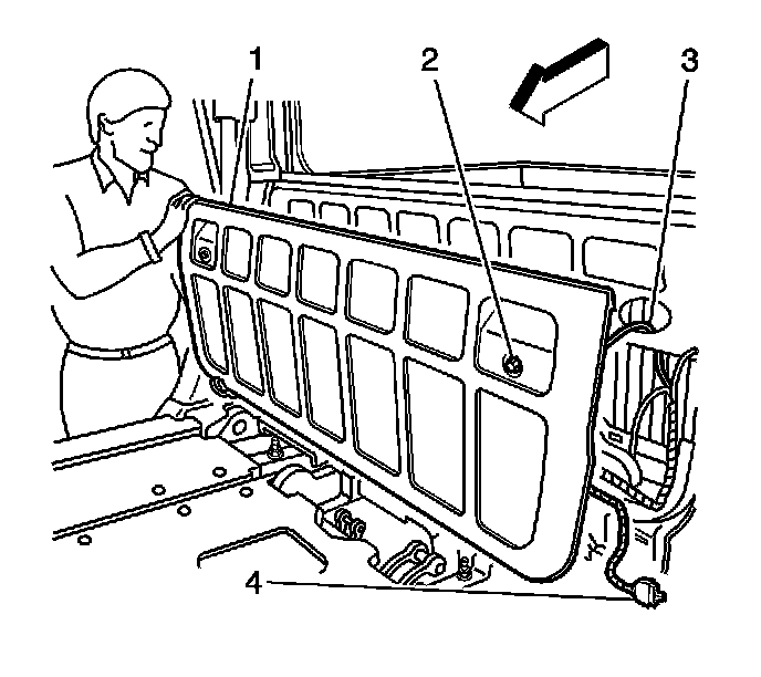 13. Install the midgate inner panel (1). Refer toMidgate Panel Replacement - Inner () .