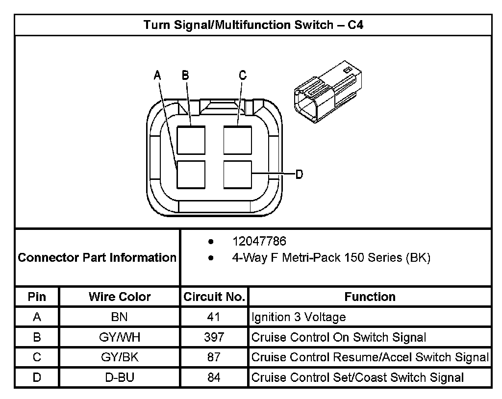 Turn Signal/Multifunction Switch - C4: