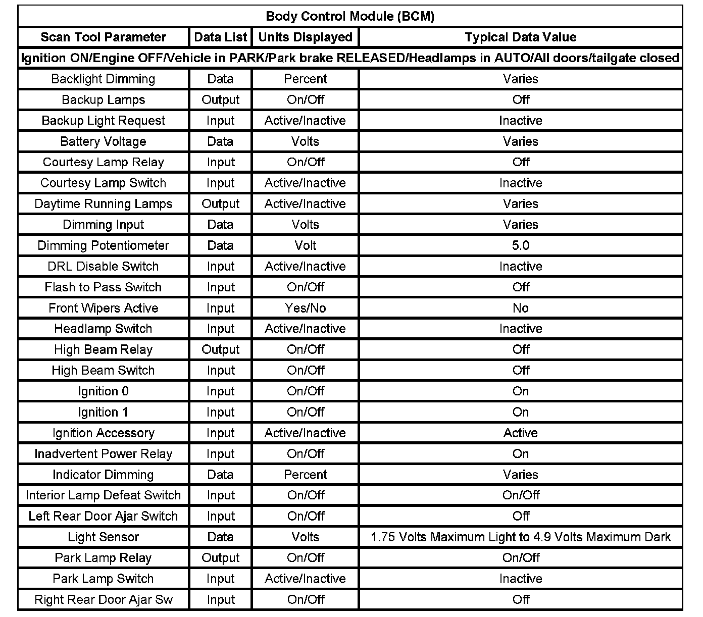 Body Control Module (BCM):