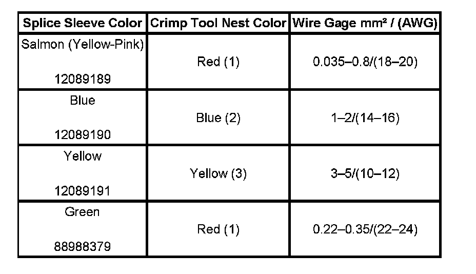 4. Select the proper DuraSeal splice sleeve according to the wire size. Refer to the above table at the beginning of the repair procedure for the color coding of the DuraSeal splice sleeves and the crimp tool nests.