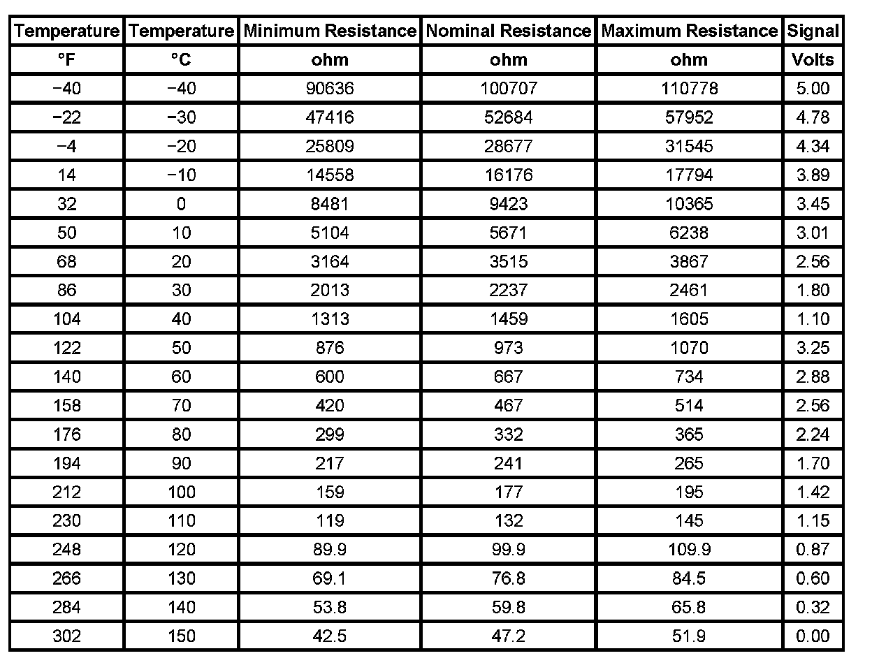 Transmission Fluid Temperature (TFT) Sensor Specifications: