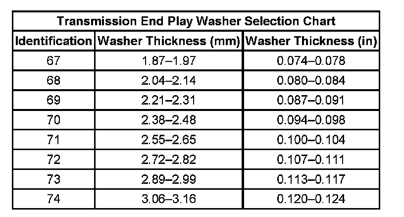 Transmission End Play Washer Selection Chart: