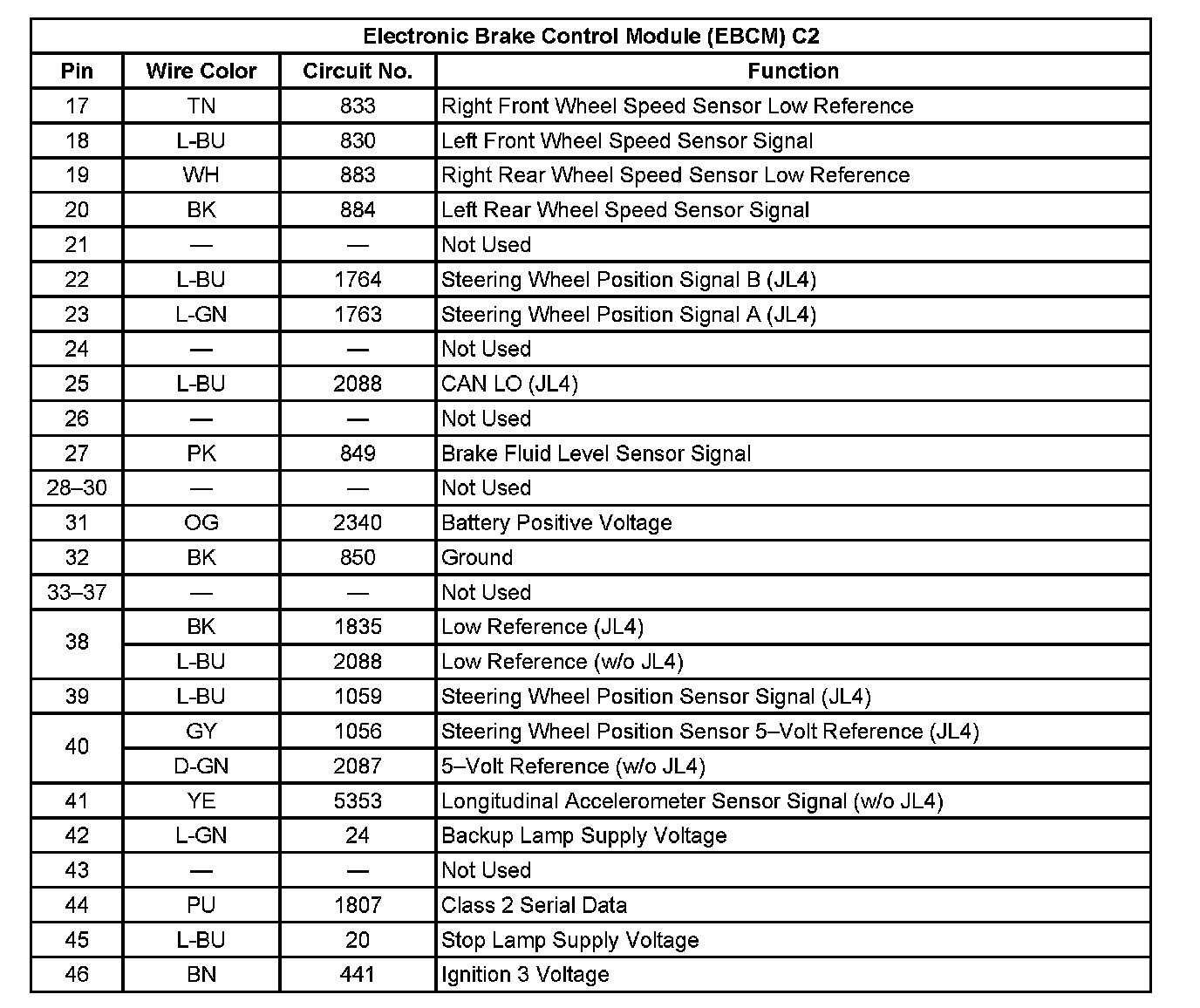 Electronic Brake Control Module (EBCM) C2:
