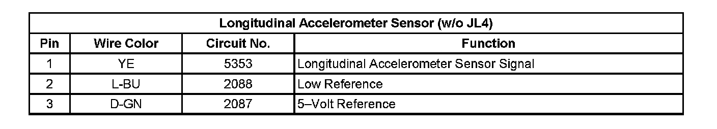 Longitudinal Accelerometer Sensor Signal (w/o JL4)