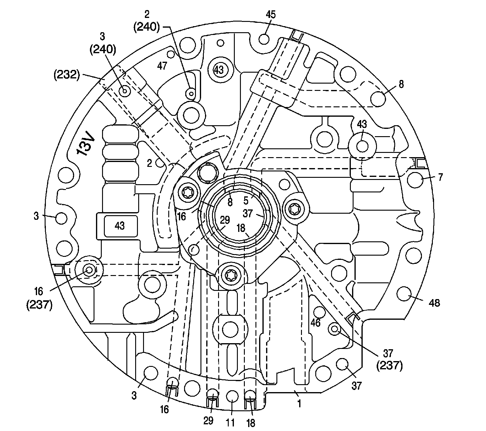 Pump Cover Fluid Passages (Case Side):