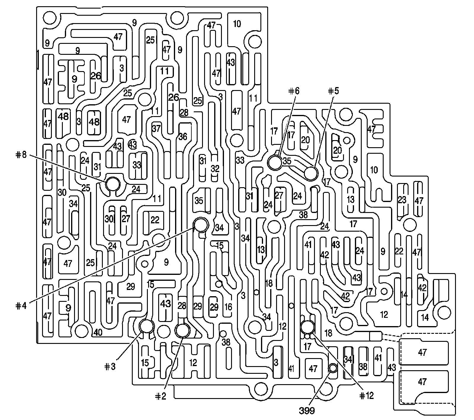 1-2 Accumulator Cover Fluid Passages: