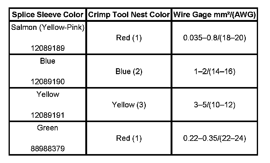 6. Select the proper DuraSeal splice sleeve according to the wire size. Refer to the above table at the beginning of the repair procedure for the color coding of the DuraSeal splice sleeves and the crimp tool nests.