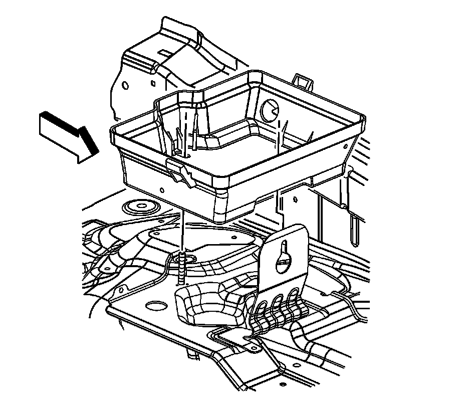 2. Install the battery cable harness clips (1, 2) to the battery tray.