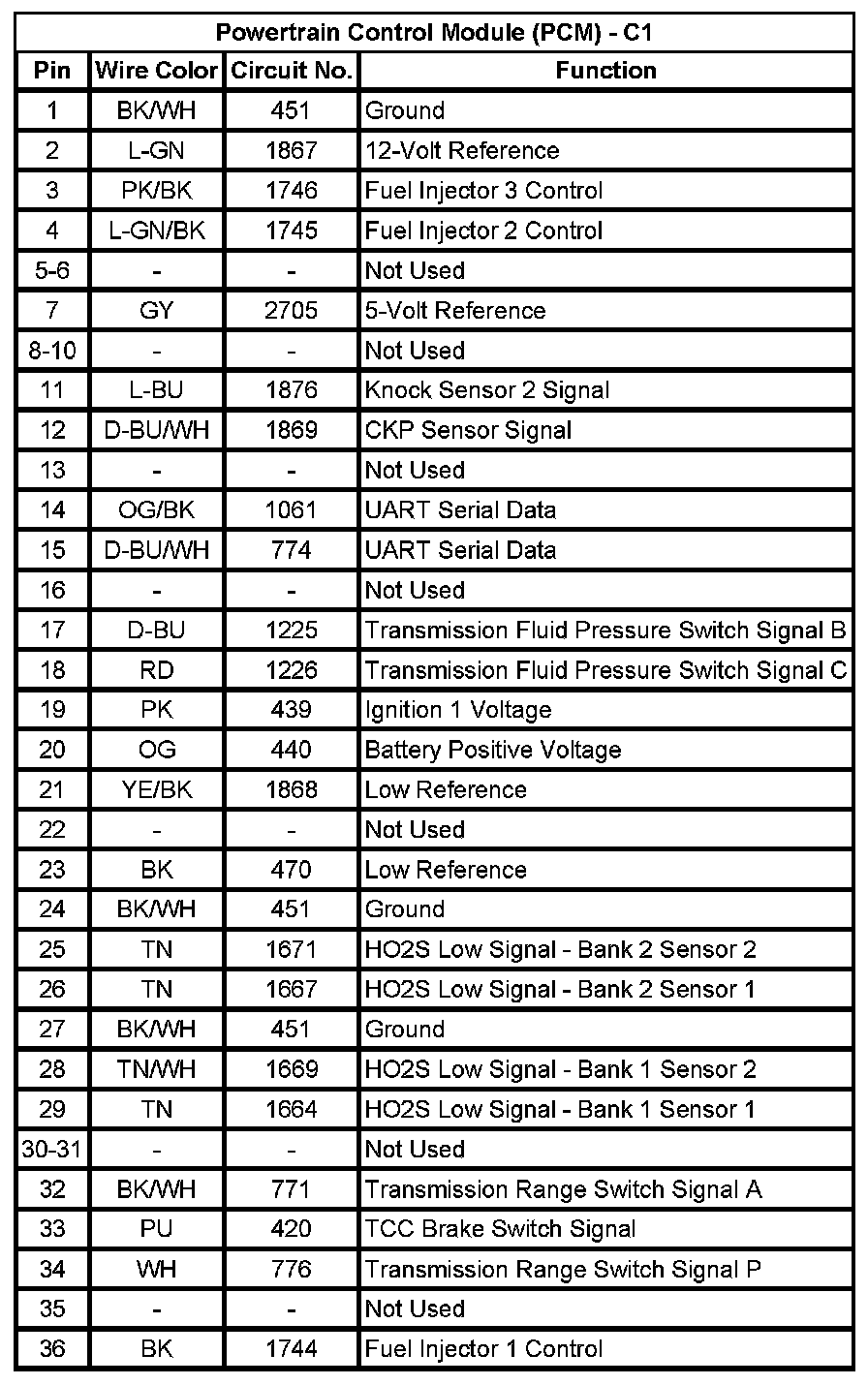 Powertrain Control Module (PCM) - C1 (Pin 1 To 36):