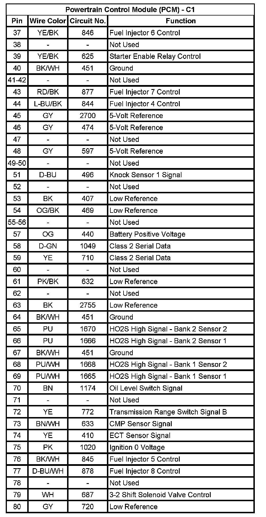 Powertrain Control Module (PCM) - C1 (Pin 37 To 80):