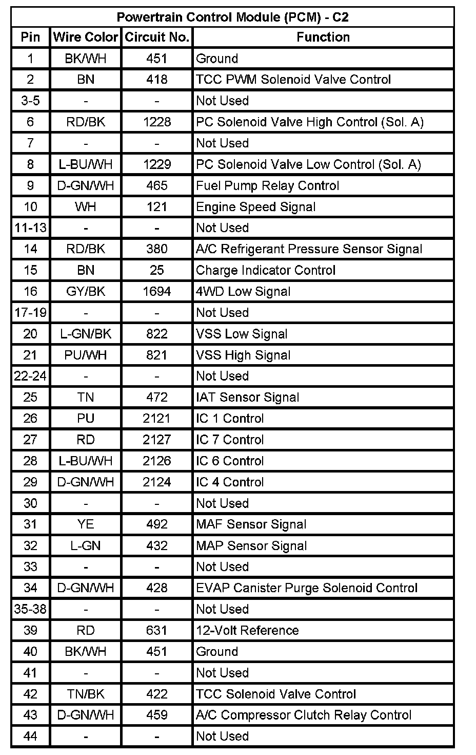 Powertrain Control Module (PCM) - C2 (Pin 1 To 44):