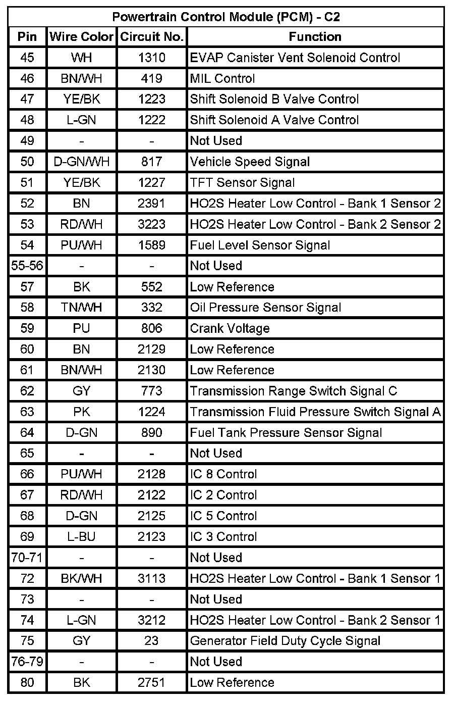Powertrain Control Module (PCM) - C2 (Pin 45 To 80):