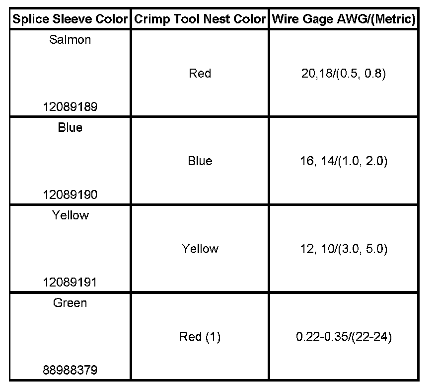 5. Select the proper duraseal splice sleeve (2) and the required crimp nest tool. Refer to the Crimp and Seal Splice Table.
