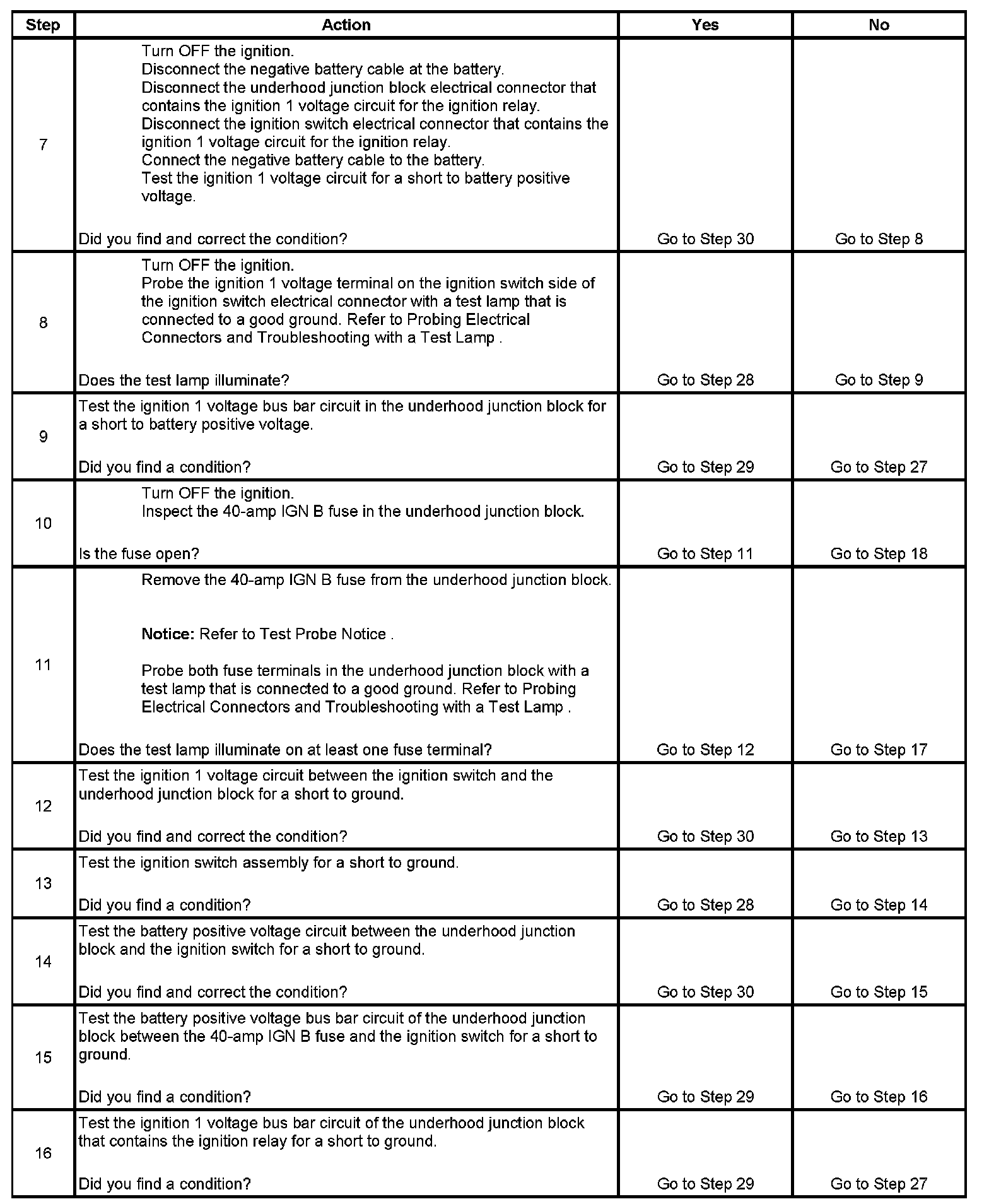 The ignition relay table assumes that the vehicle battery is fully charged. Refer to Battery Inspection/Test (Non-HP2). Component Tests and General Diagnostics