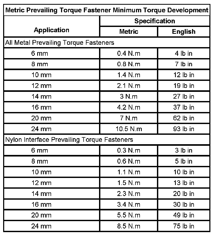 * The fastener develops the specified minimum torque against its counterpart prior to the fastener seating