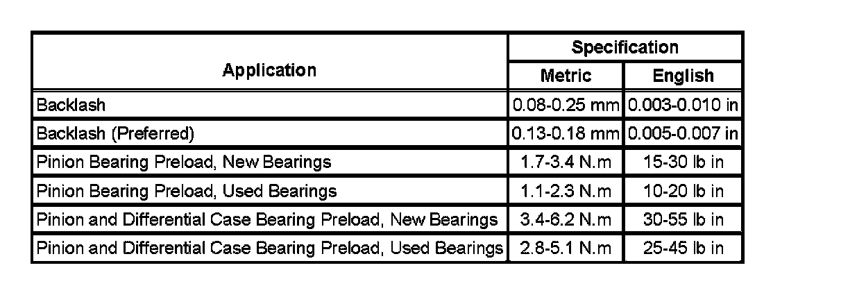 Axle Preload and Backlash Specifications: