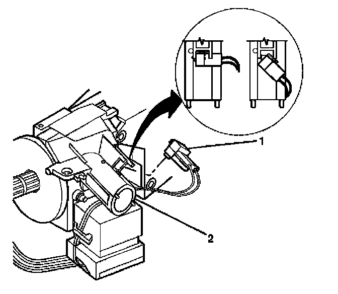 3. Push the key alarm connector (1) into the ignition lock cylinder case assembly (2).