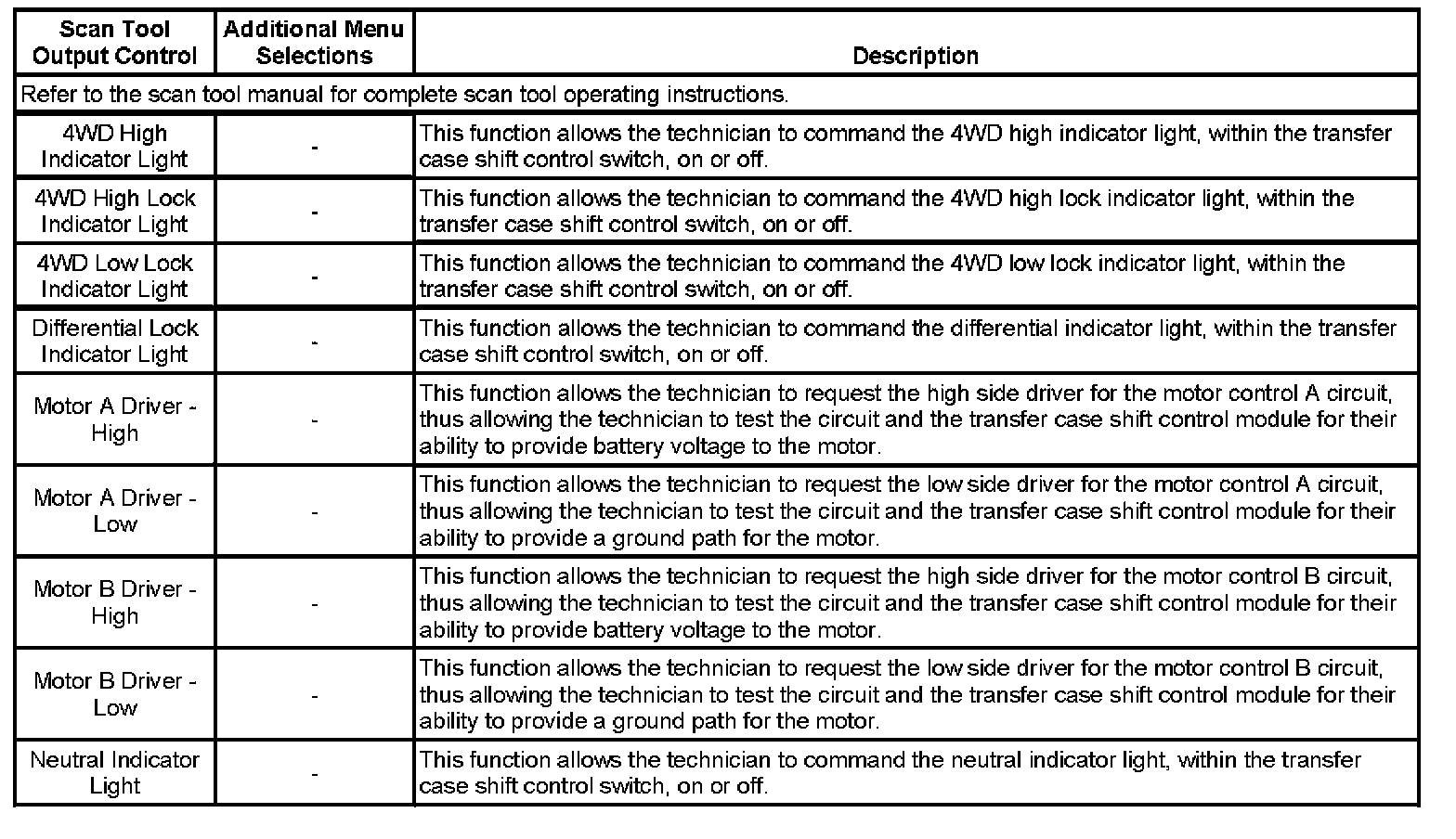 Scan Tool Output Controls: