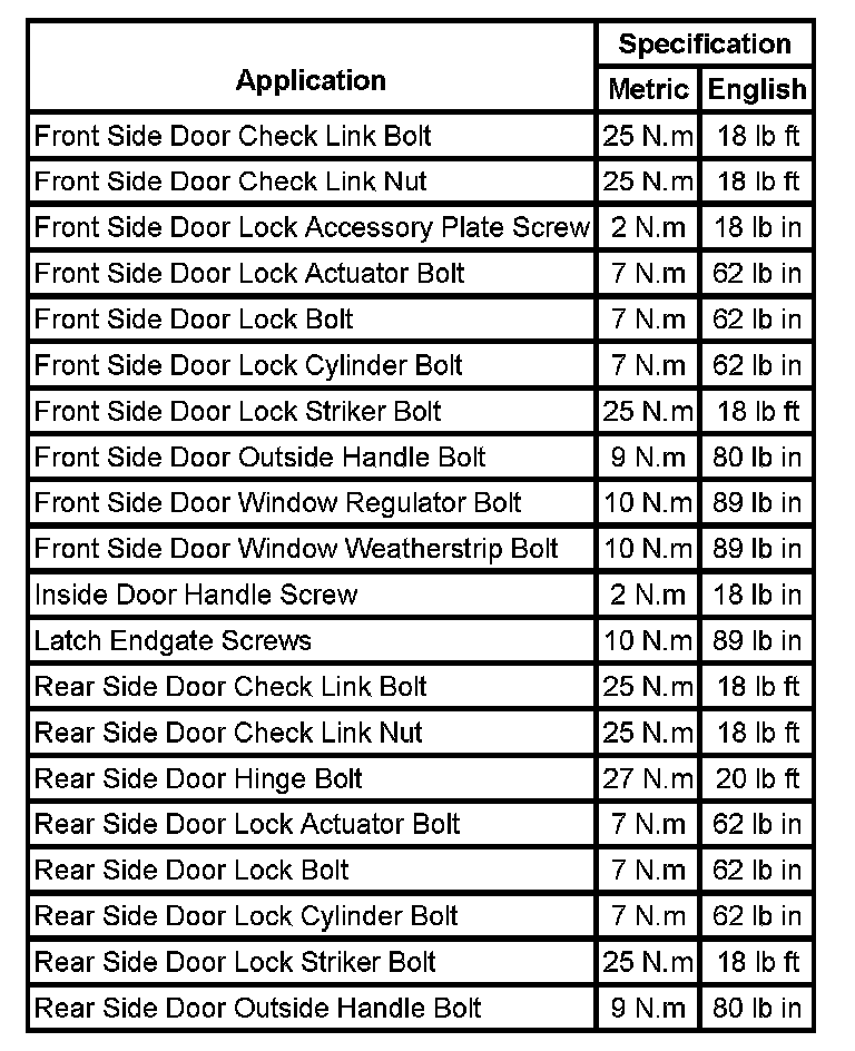 Fastener Tightening Specifications