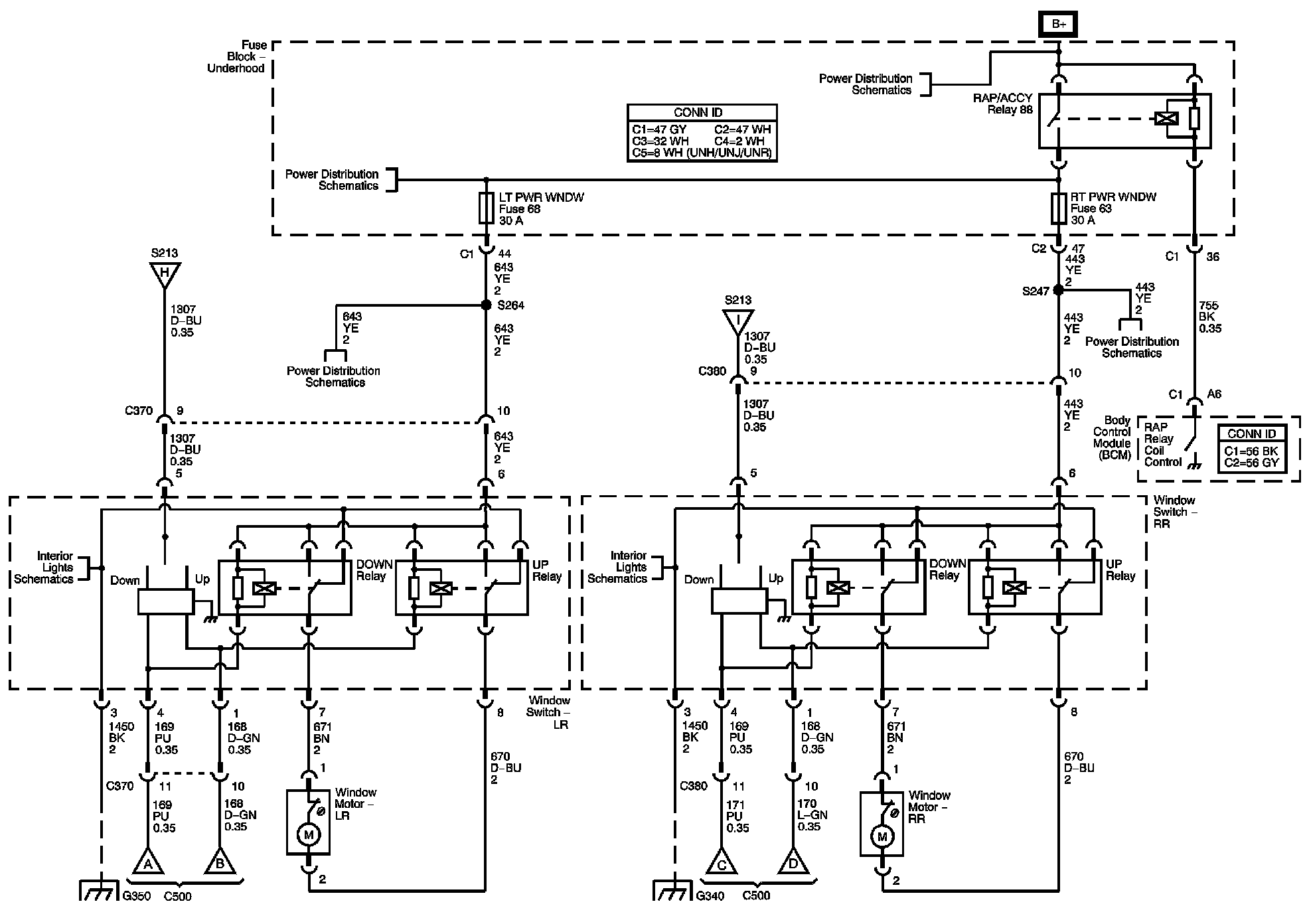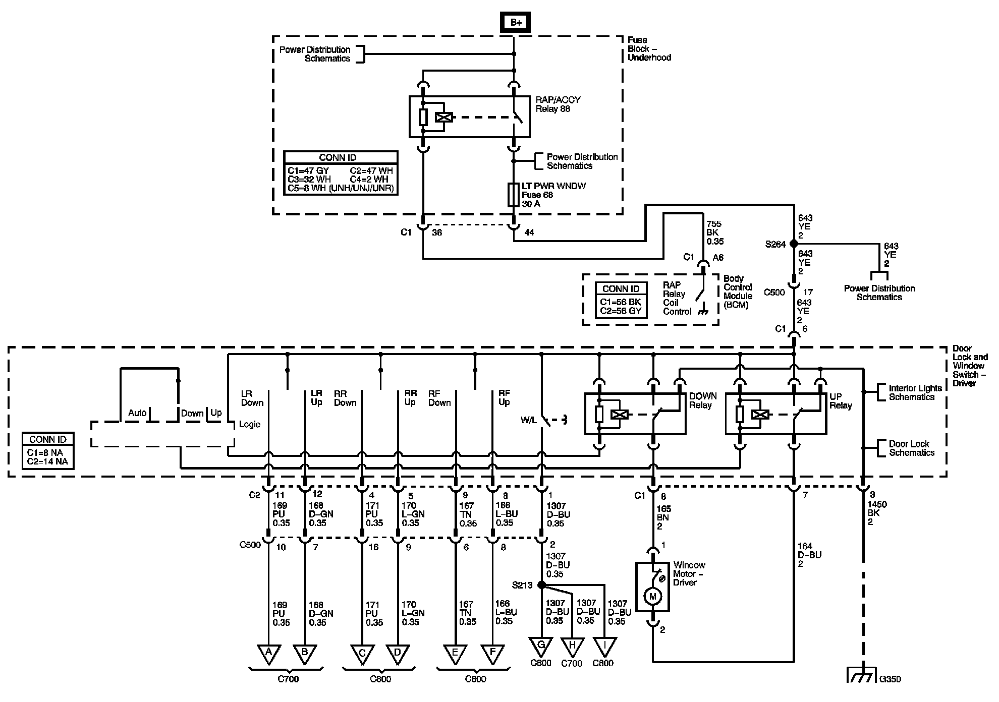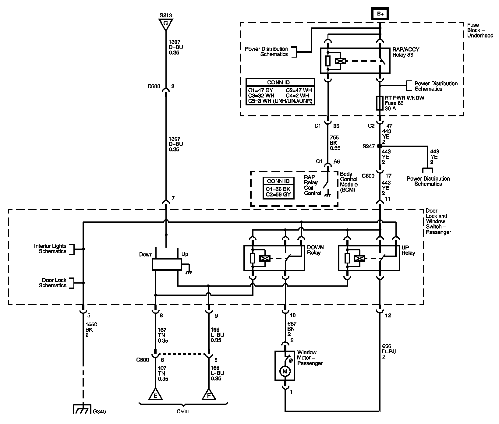 The locations for the Connectors, Grounds, Splices, and Grommets shown within these diagrams can be found via their numbers at Vehicle Locations.