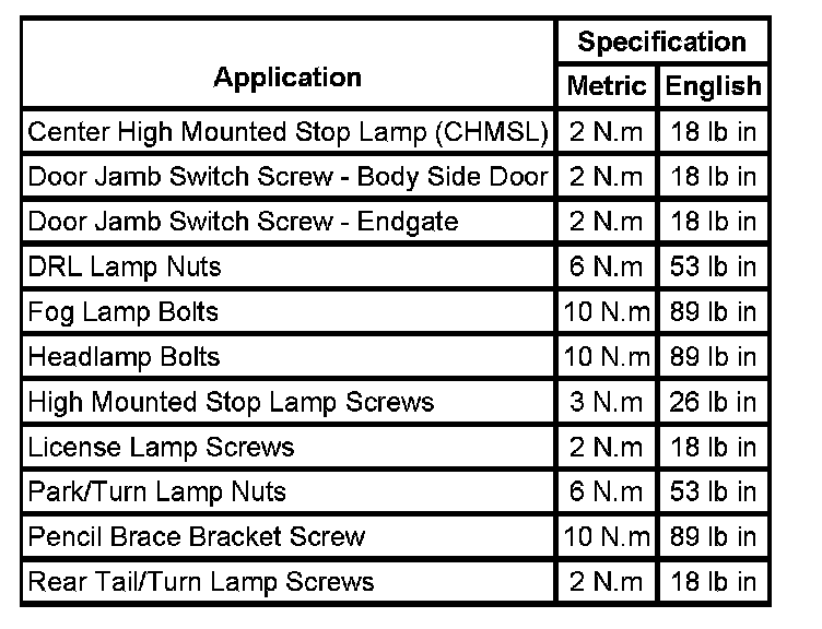 Fastener Tightening Specifications