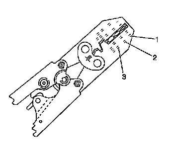 5. Use the Splice Crimp Tool from the J-38125 to crimp DuraSeal splice sleeve. In order to position the DuraSeal splice sleeve in the proper color nest of the Splice Crimp Tool. The crimp tool has three nests, 1 is for the salmon and green splice sleeve, 2 is for the blue splice sleeve, and 3 is for the yellow splice sleeve.