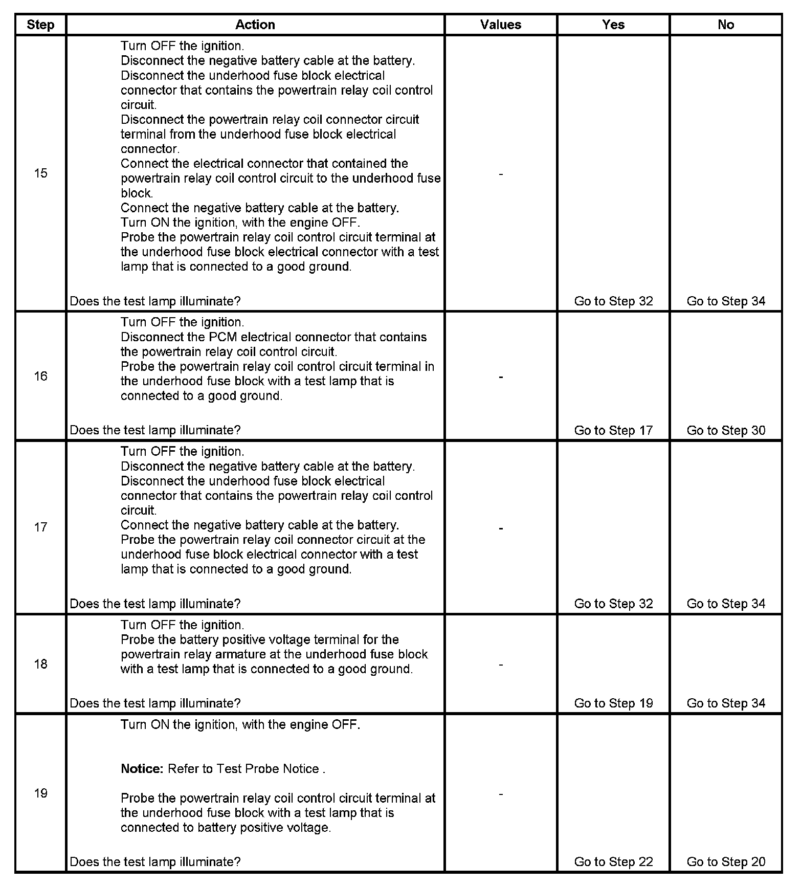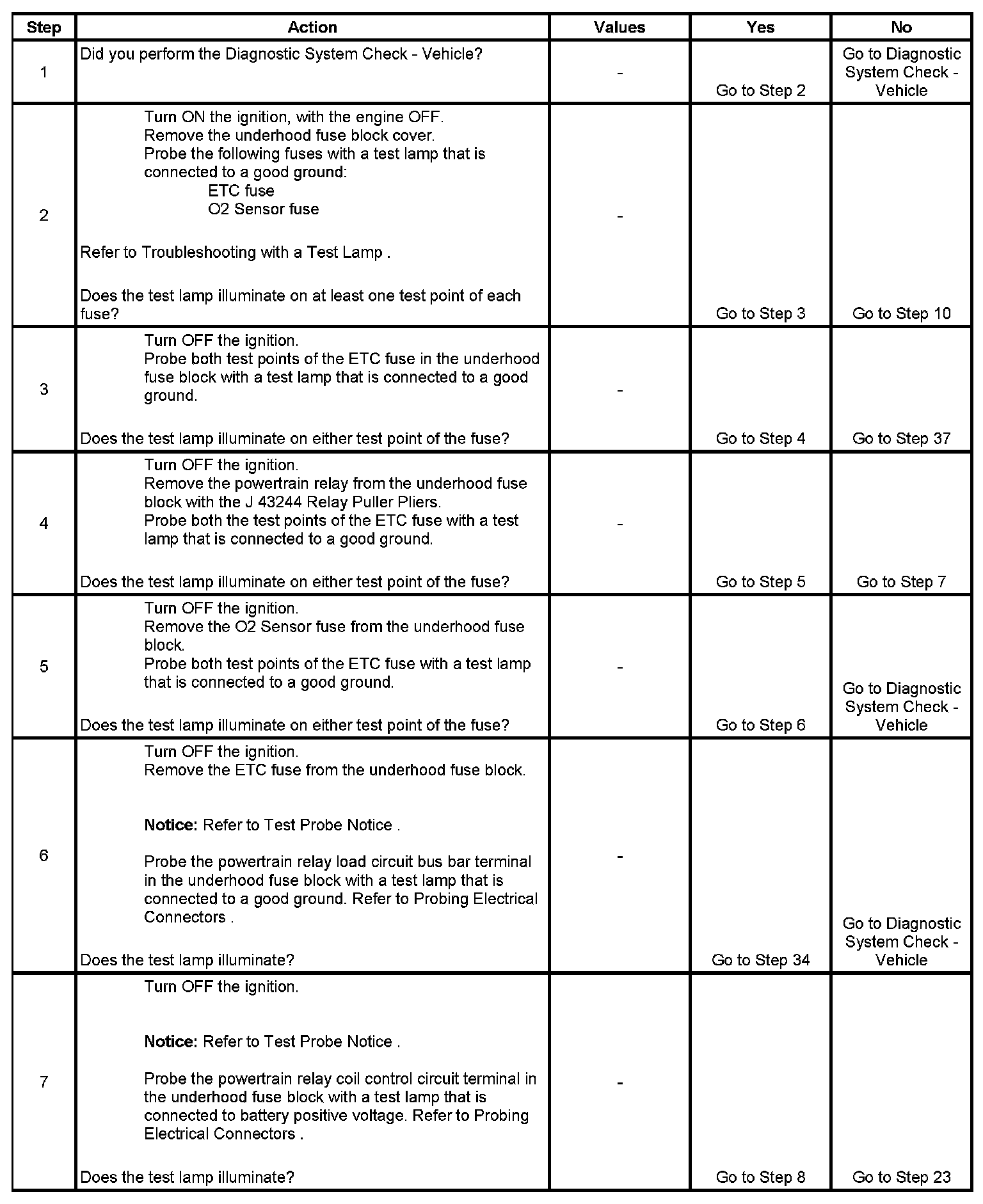 The powertrain relay system diagnosis table assumes that the vehicle battery if fully charged. Refer to Battery Inspection/Test (Non-HP2). Component Tests and General Diagnostics