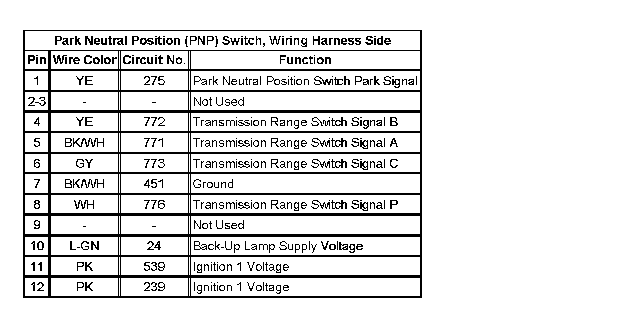 Park Neutral Position (PNP) Switch, Wiring Harness Side: