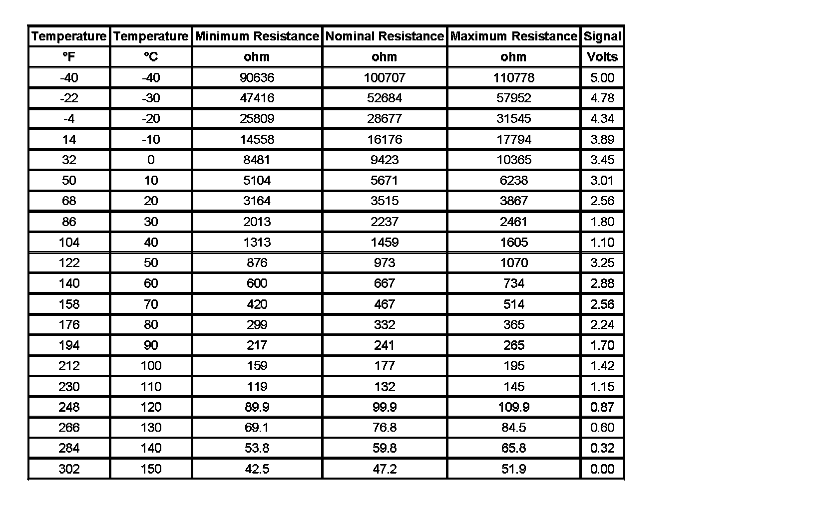 Transmission Fluid Temperature Sensor Specifications