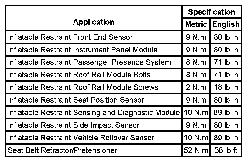 Fastener Tightening Specifications