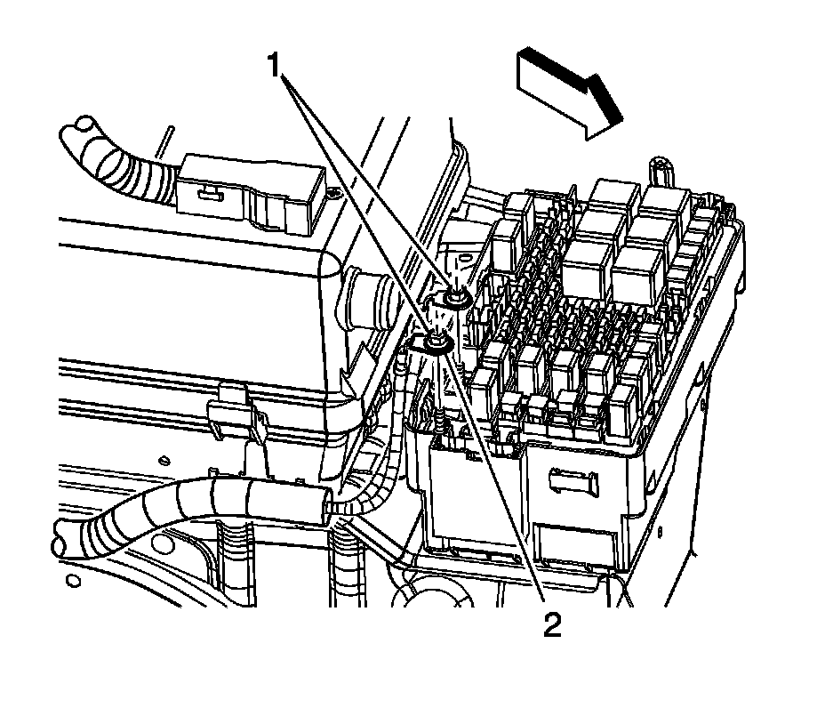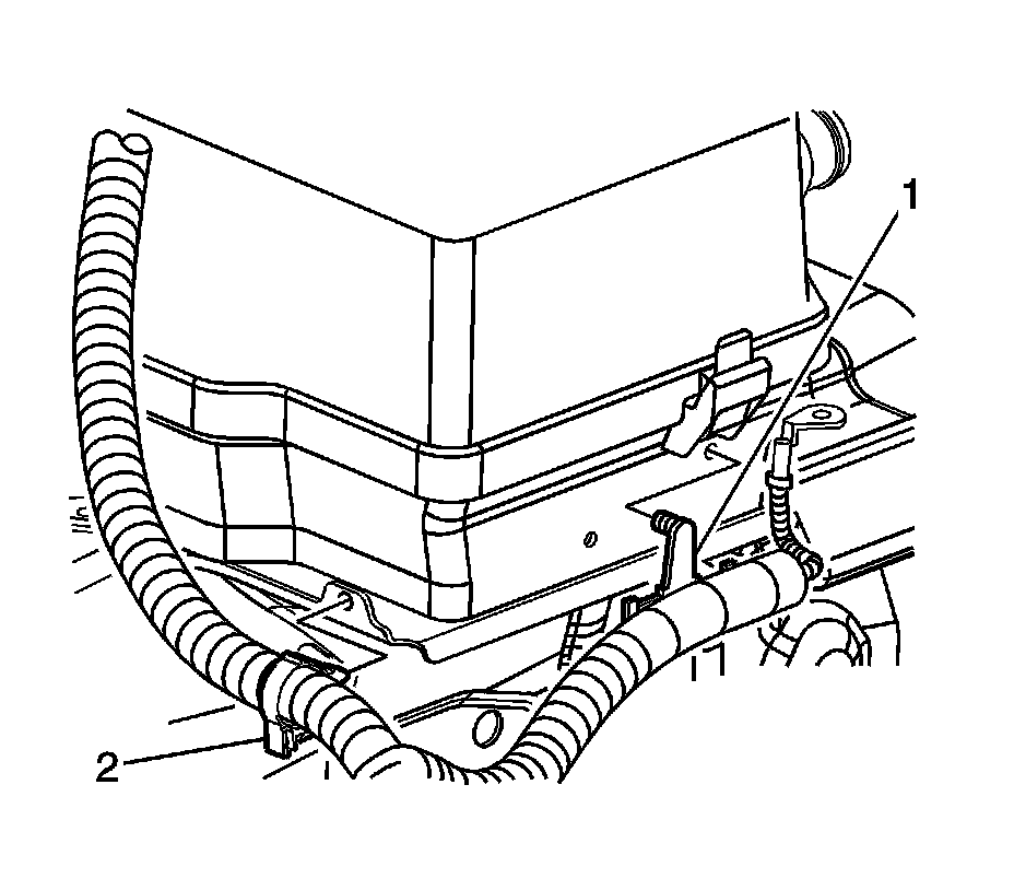 2. Remove the battery cable harness clips (1, 2) from the battery tray.