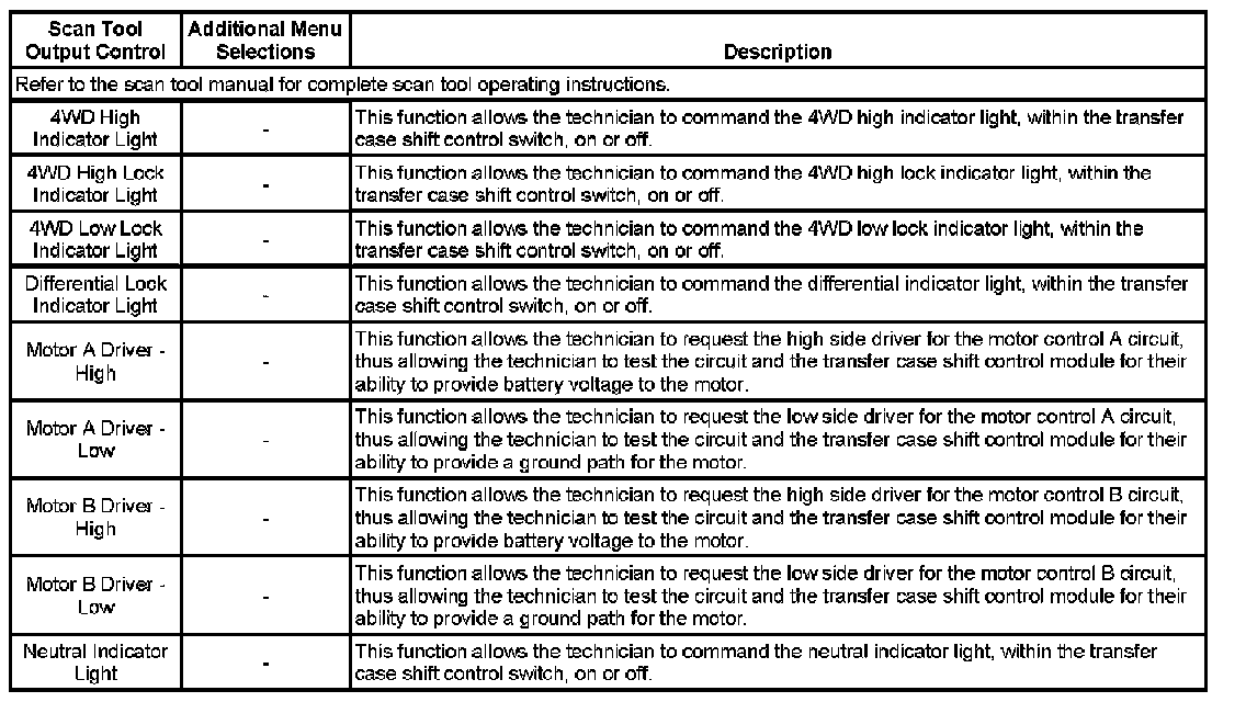 Scan Tool Output Controls: