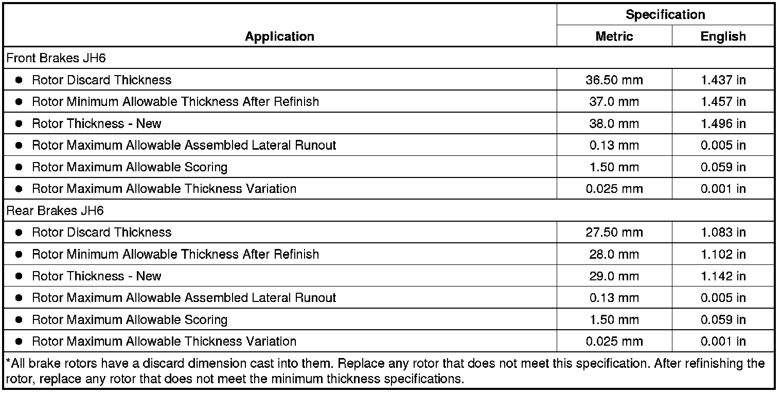 Disc Brake Component Specifications