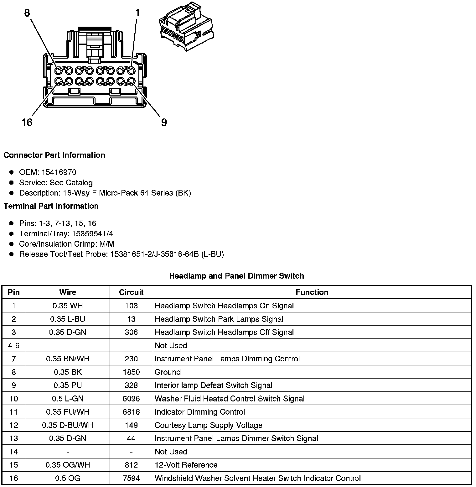 Headlamp and Panel Dimmer Switch