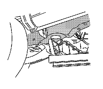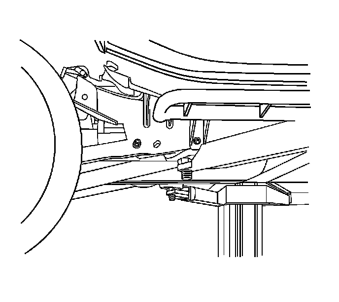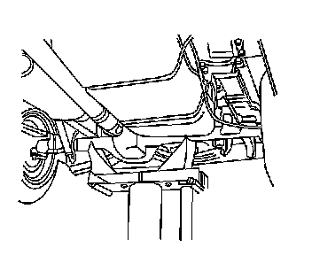 Caution: To avoid any vehicle damage, serious personal injury or death when major components are removed from the vehicle and the vehicle is supported by a hoist, support the vehicle with jack stands at the opposite end from which the components are being removed and strap the vehicle to the hoist.