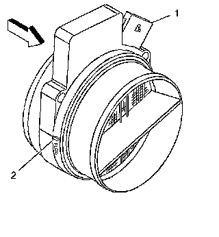 1. Locate the air flow direction arrow (2) on the MAF/IAT sensor.
